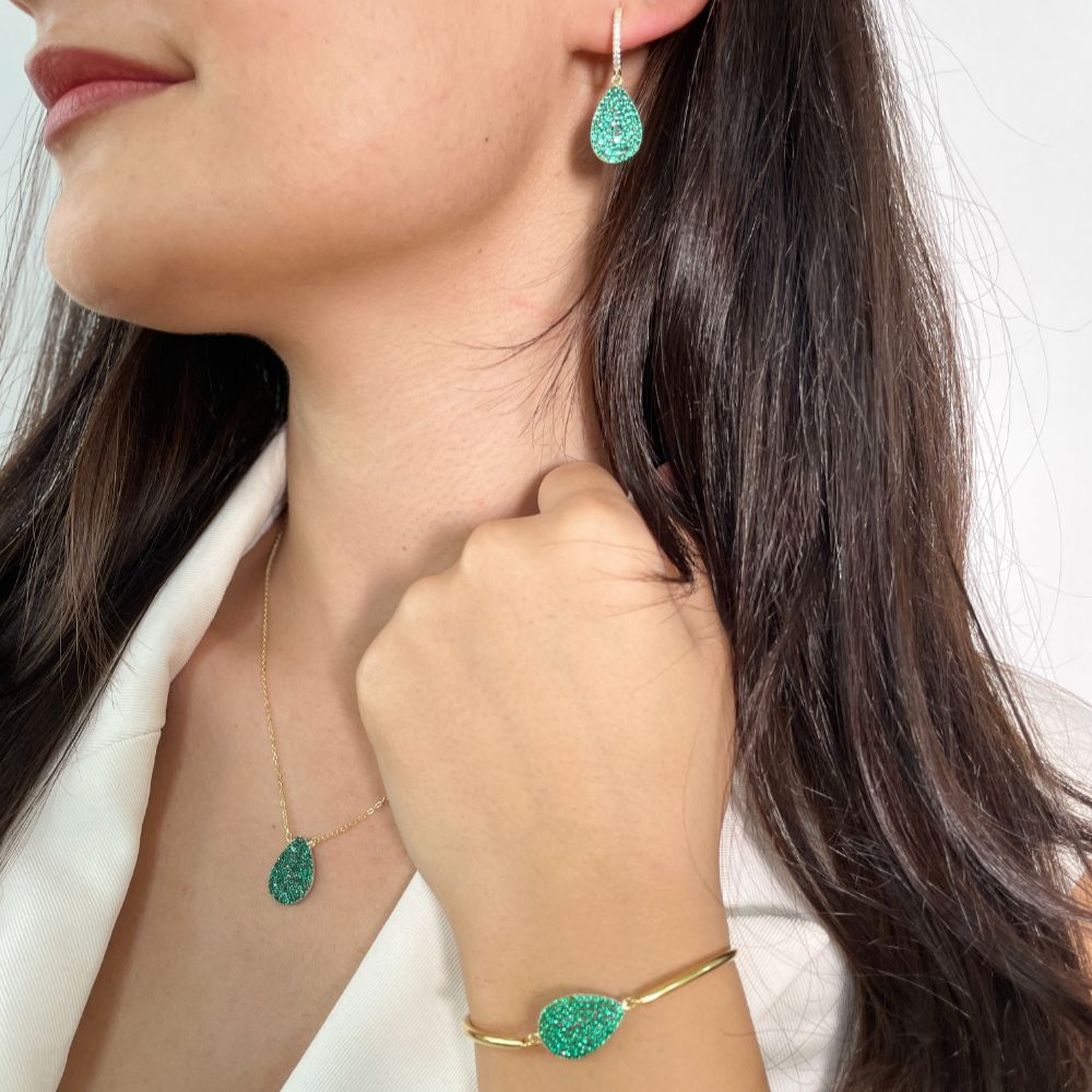 Cercei lacrima argint placati cu aur de 18K cu pietre zirconia verzi Mirror
