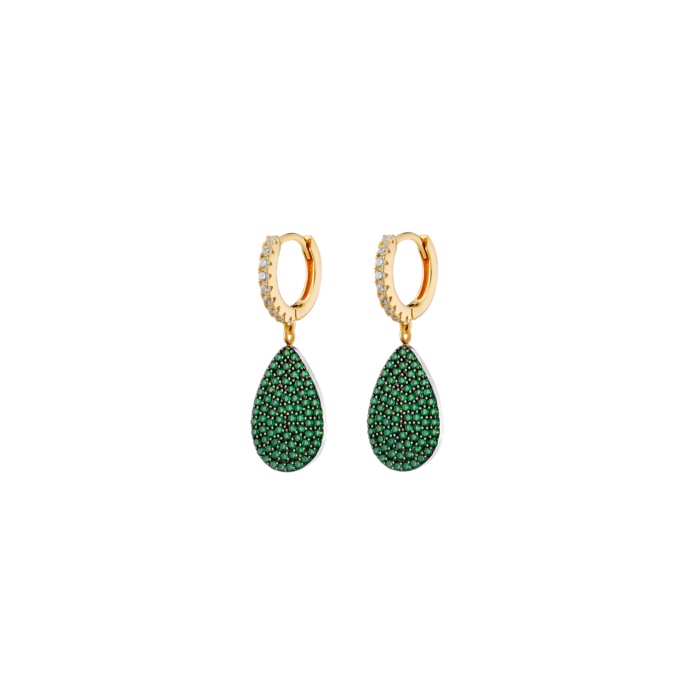 Cercei lacrima realizati din argint 925 placati cu aur galben de 18K decorati cu pietre cubic zirconia verzi.