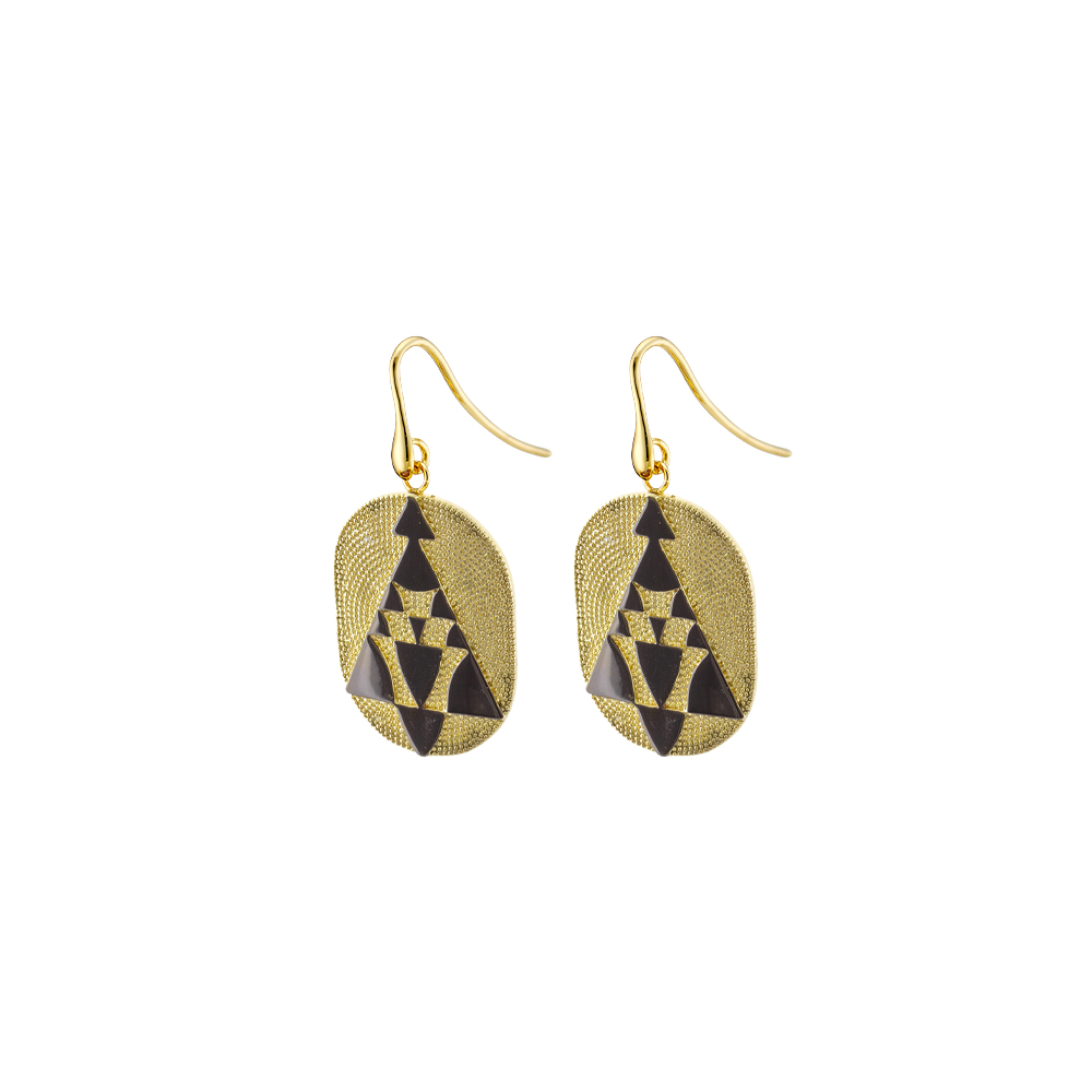 Cercei placati cu aur galben de 18K si ruteniu cu model abstract Natrix