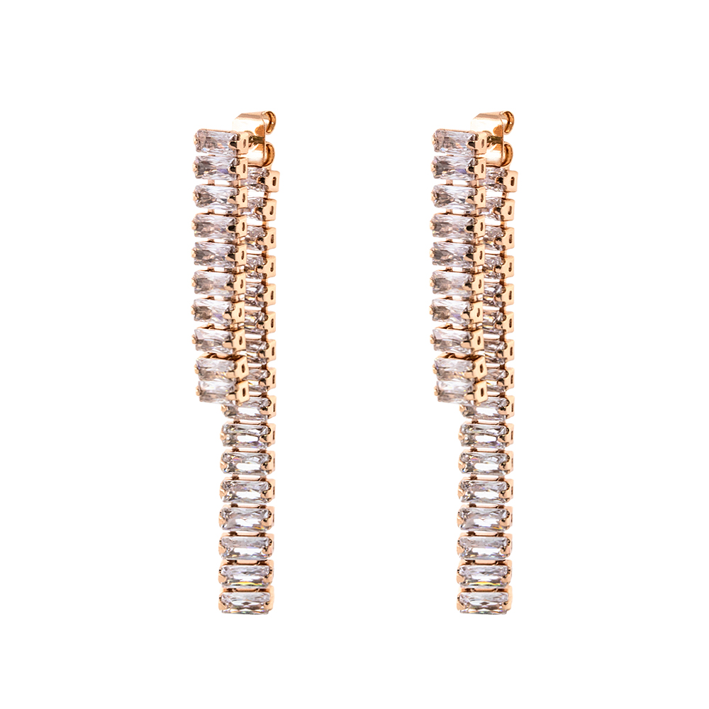 Cercei asimetrici placati cu aur roz de 18 K decorati cu cristale Party