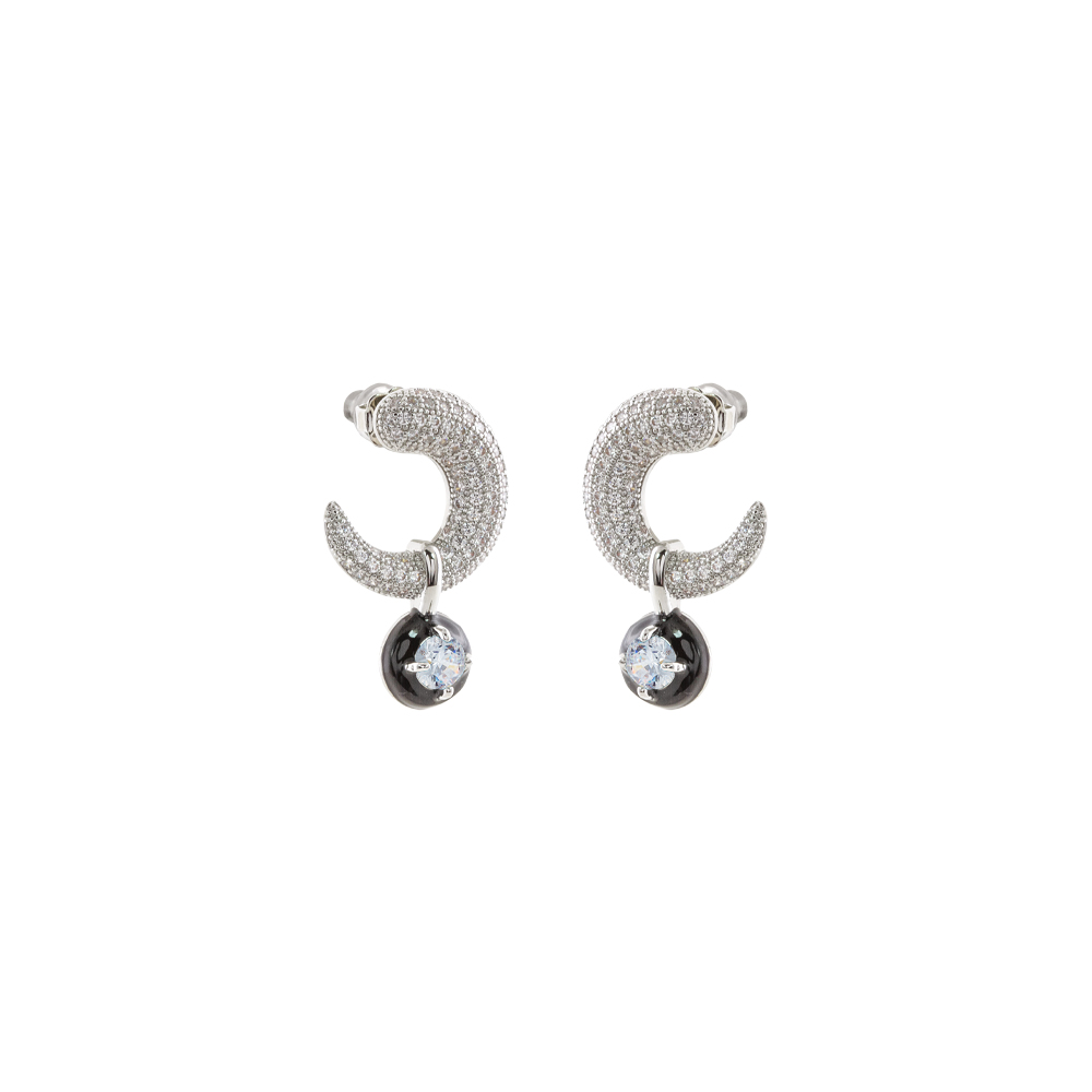 Cercei cu surub placati cu rodiu si email negru cu cristale zirconia incolore Party