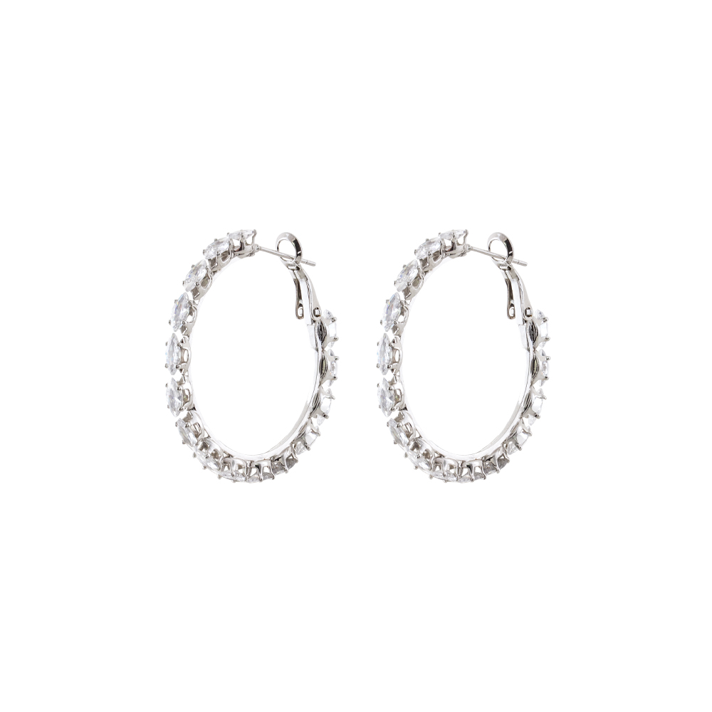 Descrierea produsului Cercei creole placati cu rodiu si pietre cubic zirconia incolore Party: