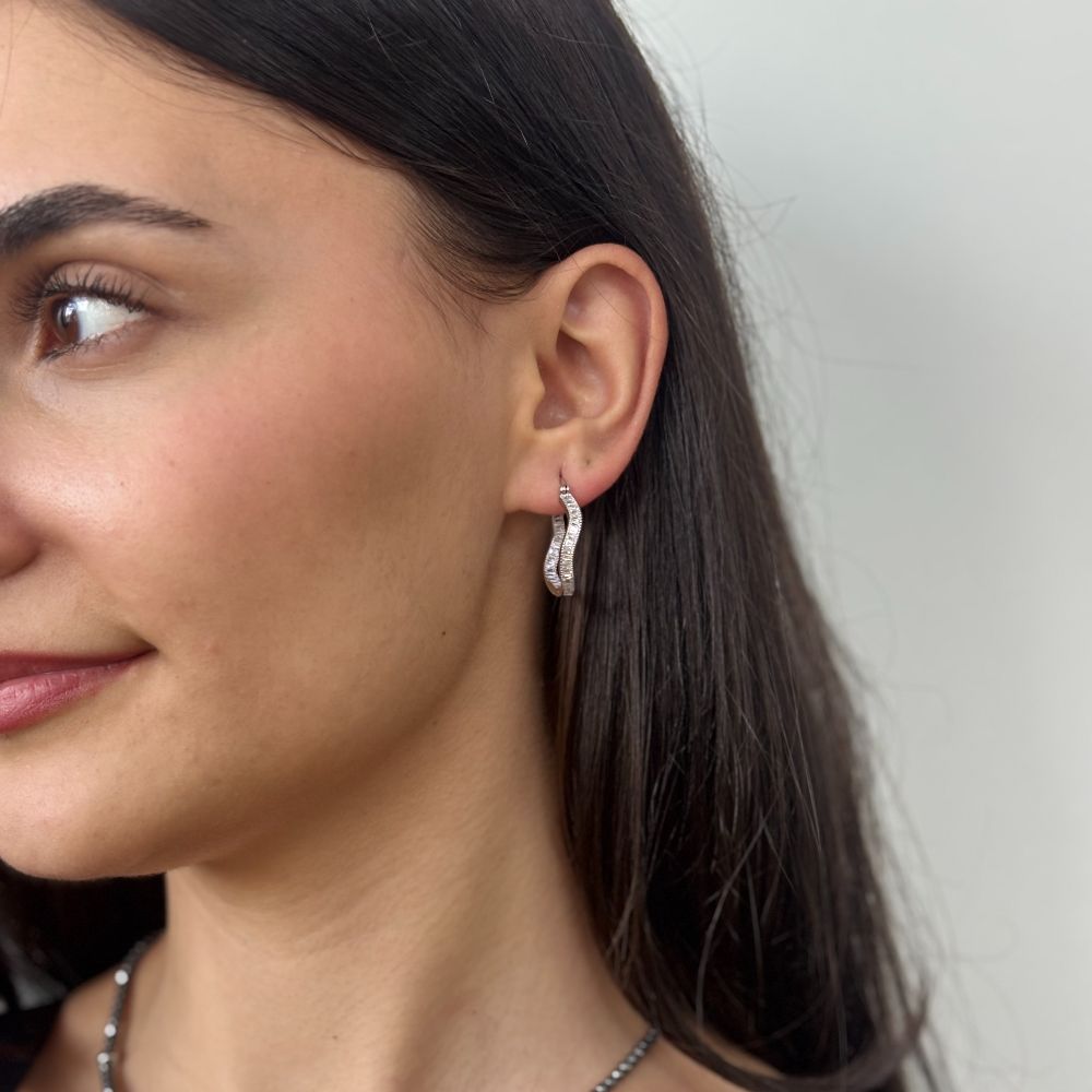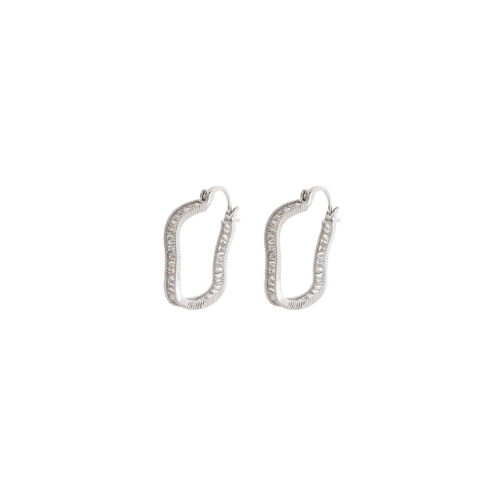 Cercei ondulati placati cu rodiu si pietre cubic zirconia incolore Party