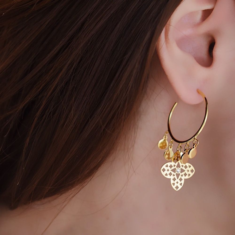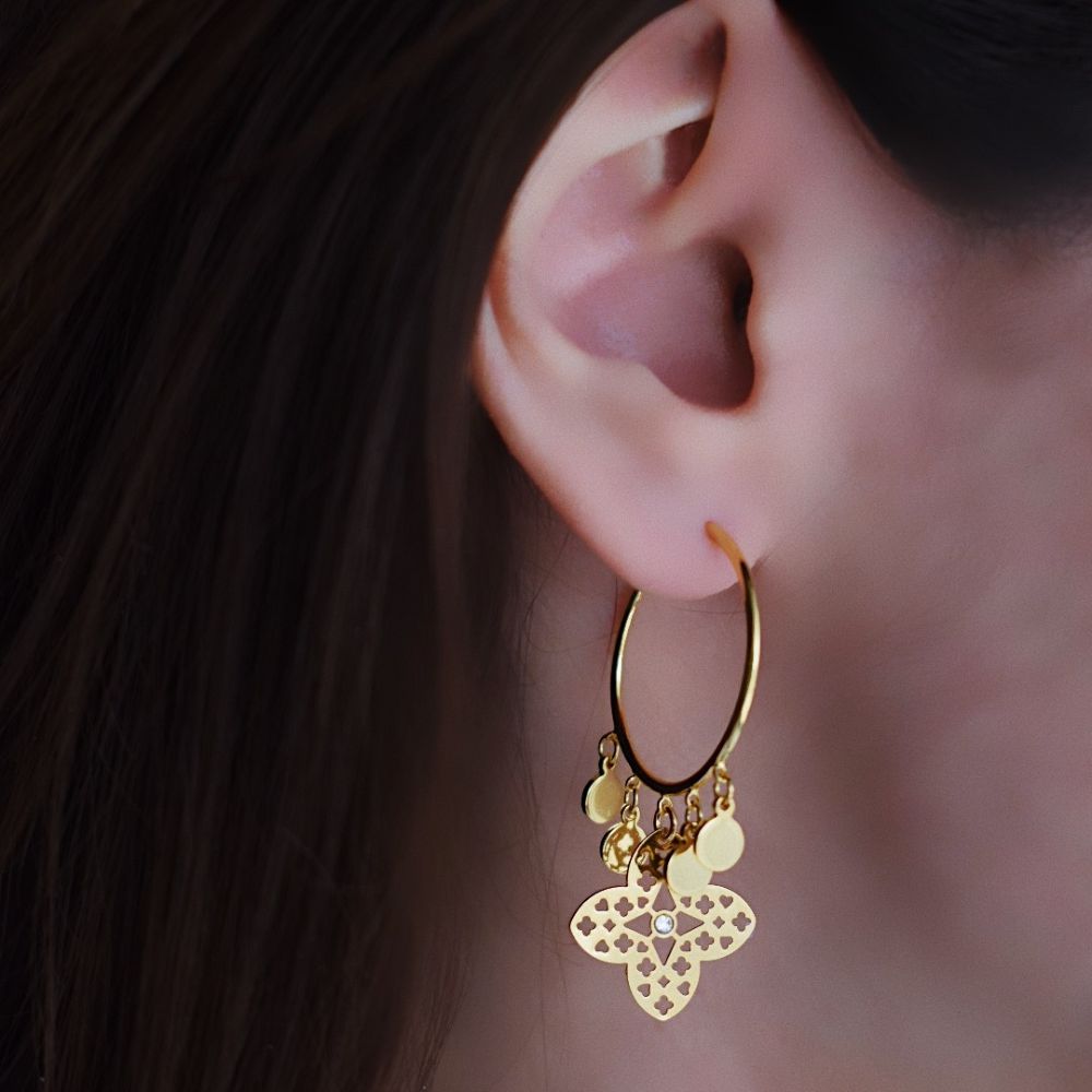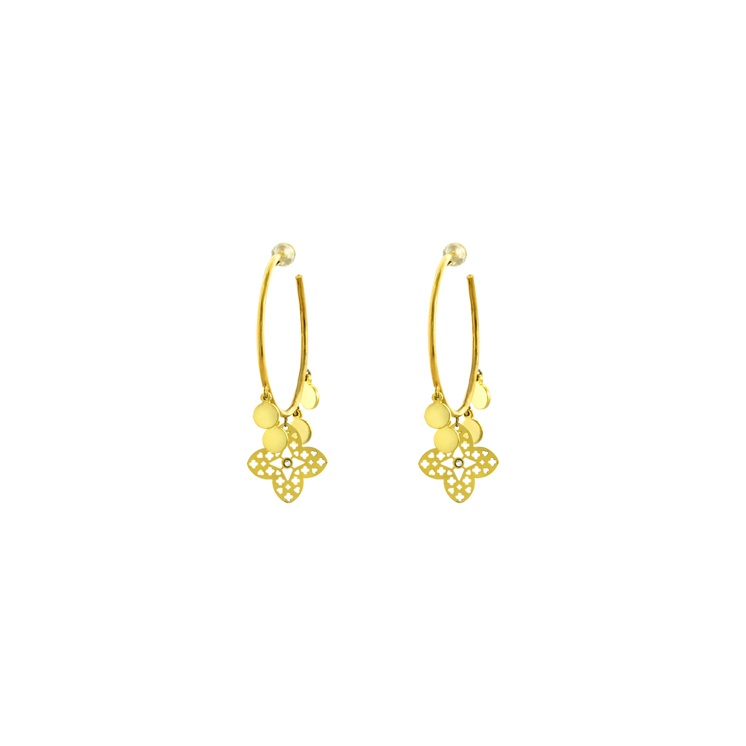 Cercei creole placati cu aur galben de 18 K cu cristale Primavera