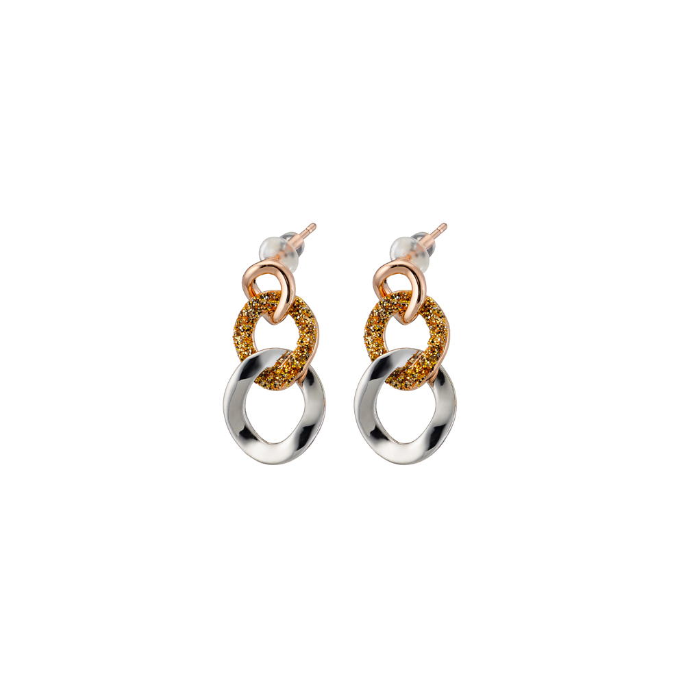 Descrierea produsului Cercei cu surub placati cu rodiu si aur roz de 18 K si glitter auriu Starstruck: