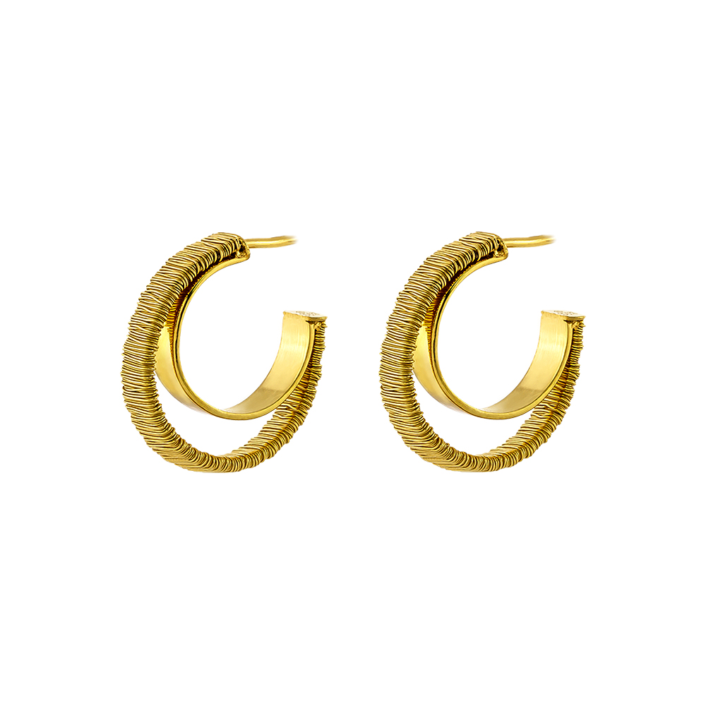 Cercei creole realizati din argint 925 placat cu aur galben de 18 K compusi din doua cercuri cu texturi diferite.