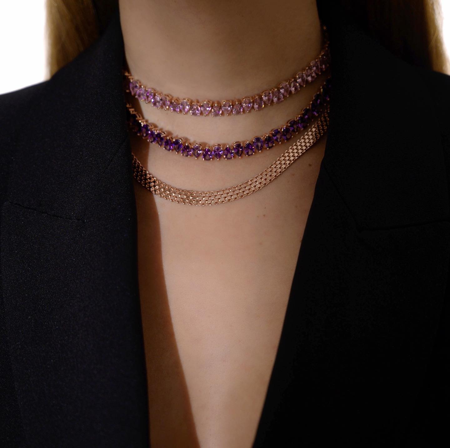 Colier gros realizat din aliaj placat cu aur roz de 18 K. Recomandari de purtare: