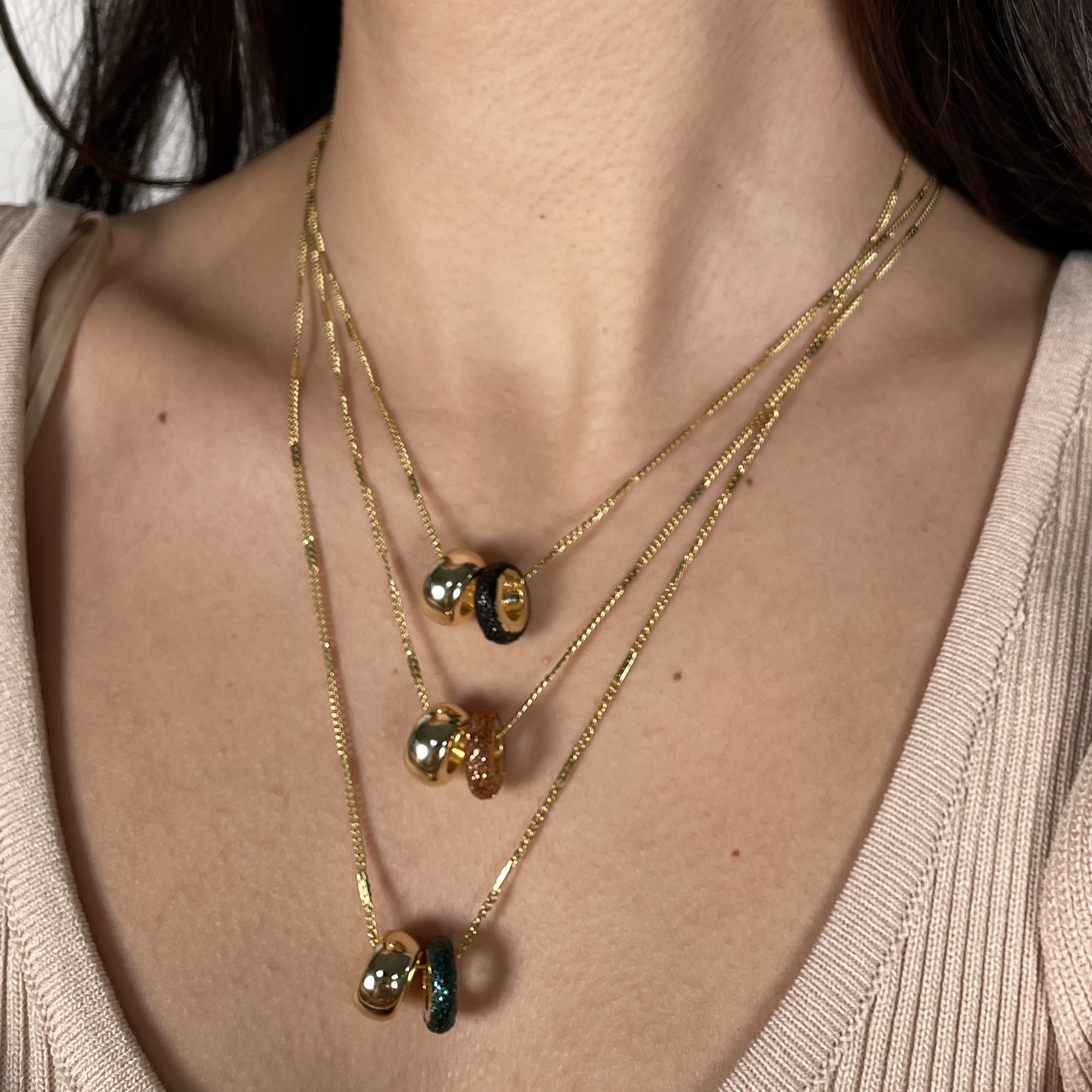 Colier placat cu aur de 18K cu pandantive inele si glitter negru Candy Festive