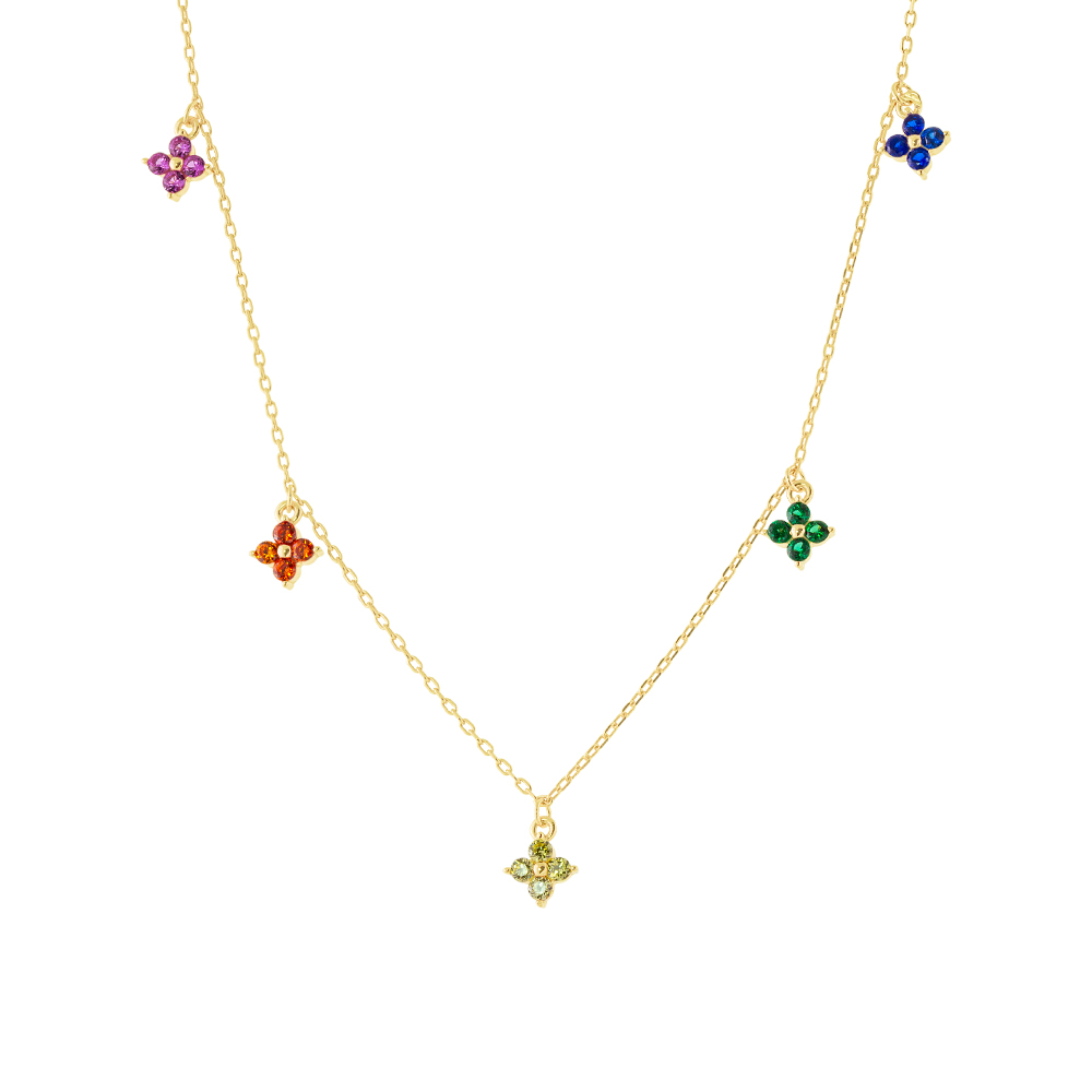 Colier din argint placat cu aur galben de 18 K decorat cu flori si pietre cubic zirconia multicolore Charming