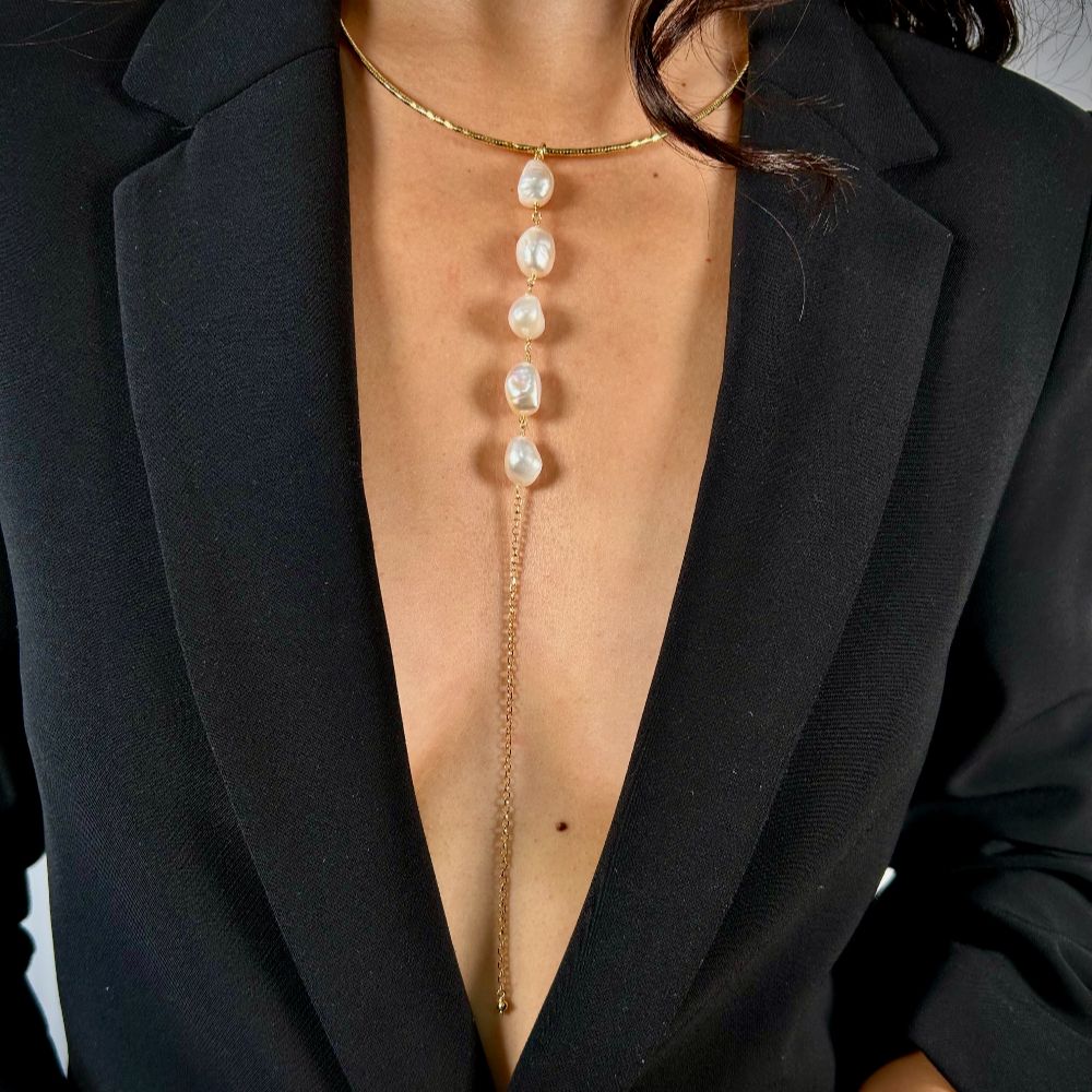 Acest colier tip Y imbina luciul aurului galben cu delicatetea perlelor de cultura, creand un efect vizual rafinat si feminin. Recomandat pentru evenimente speciale, tinute de cocktail sau ocazii festive, adauga o nota subtila de eleganta si rafinament fiecarui outfit.