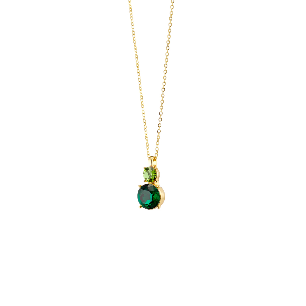 Colier scurt realizat din metal comun placat cu aur galben de 18K decorat cu 2 pietre cubic zirconia verzi. Recomandari de purtare: