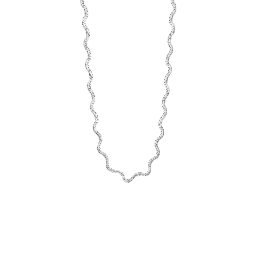 Colier scurt ondulat realizat din metal comun placat cu rodiu.