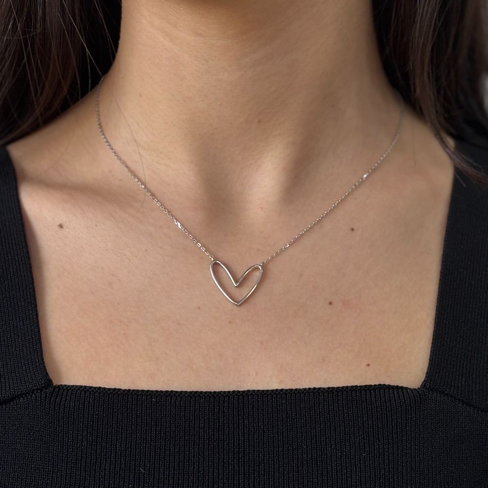Colier scurt realizat din argint 925 placat cu rodiu decorat cu pandantiv in forma de inima.