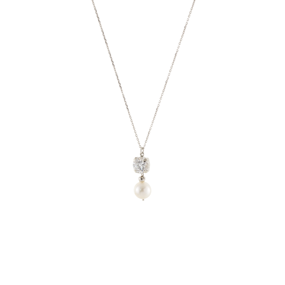 Colier scurt din argint 925 placat cu rodiu decorat cu perla de cultura si piatra cubic zirconia incolora.