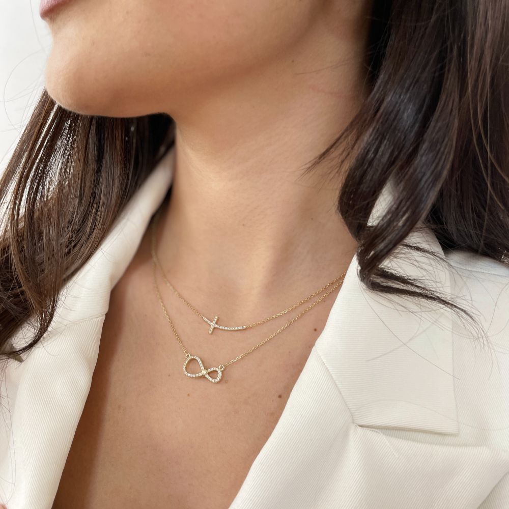 Colier scurt argint placat cu aur de 18K cu pandantiv infinit si pietre zirconia Gifting Symbols