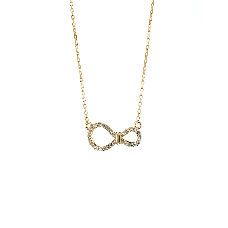 Colier scurt realizat din argint 925 placat cu aur galben de 18K decorat cu pandantiv infinit presarat cu pietre cubic zirconia incolore.