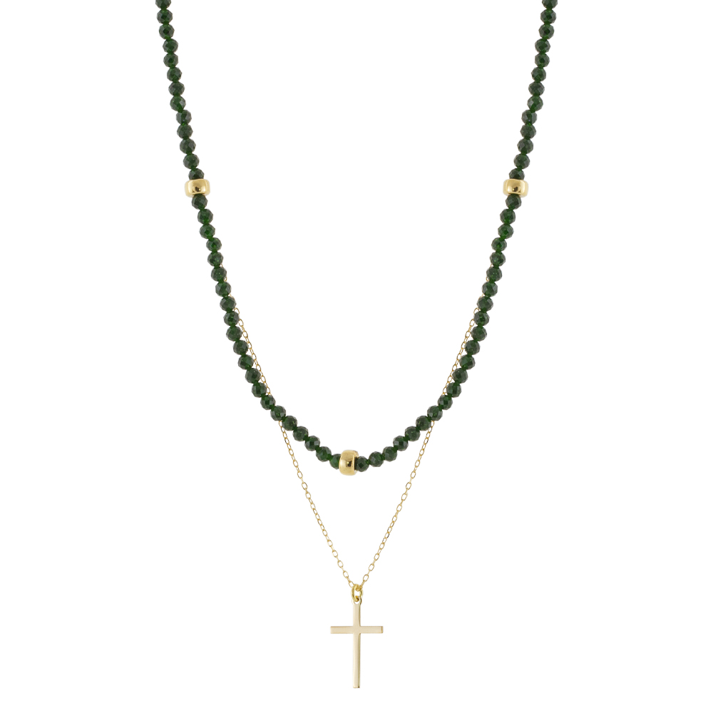 Colier dublu argint placat cu aur 18K cu agate verzi si pandantiv cruce Gifting Symbols