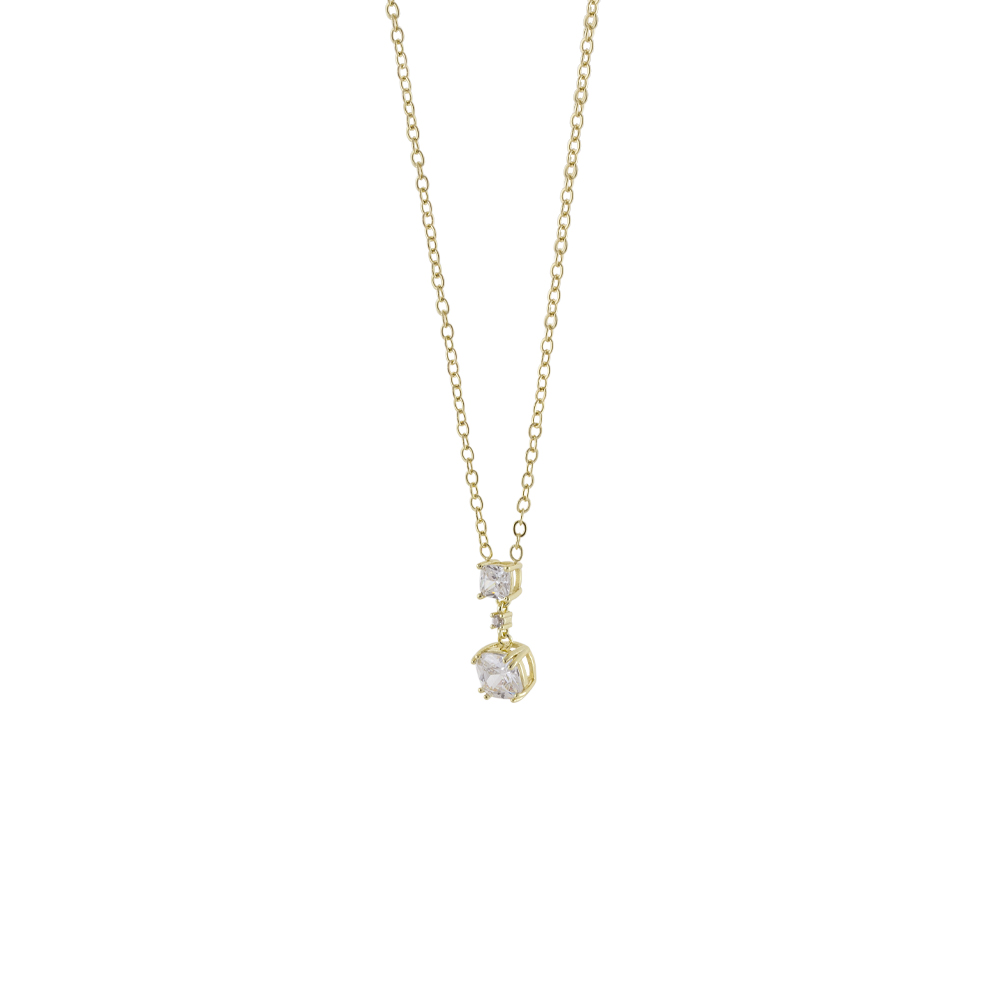 Colier scurt realizat din metal comun placat cu aur galben de 18K decorat cu 2 pietre cubic zirconia incolore.