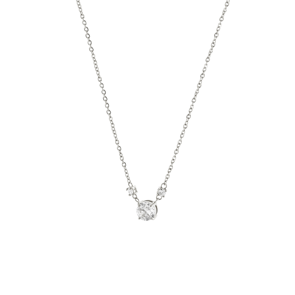 Colier realizat din otel inoxidabil placat cu rodiu decorat cu pietre cubic zirconia incolore.