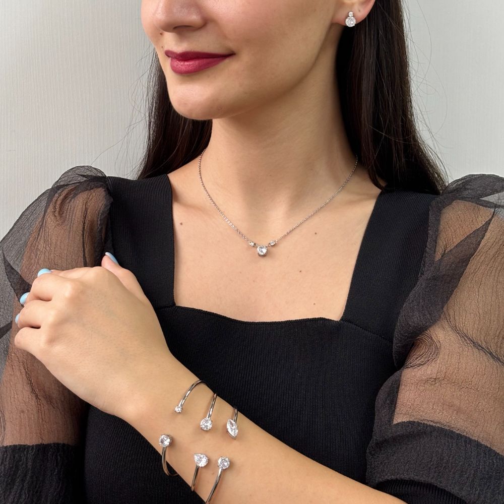 Colier realizat din otel inoxidabil placat cu rodiu decorat cu pietre cubic zirconia incolore.