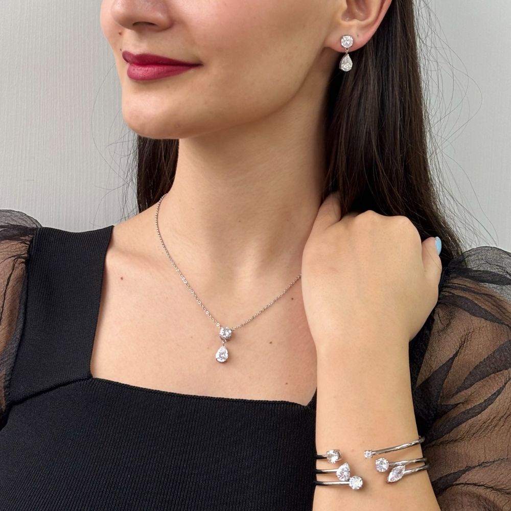Colier realizat din otel inoxidabil placat cu rodiu decorat cu pietre cubic zirconia incolore.
