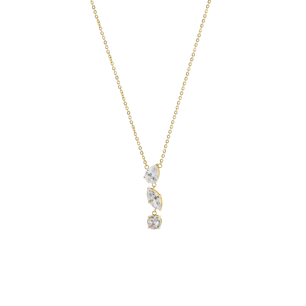 Colier realizat din otel inoxidabil placat cu aur 18K cu pandantiv decorat cu pietre cubic zirconia incolore.