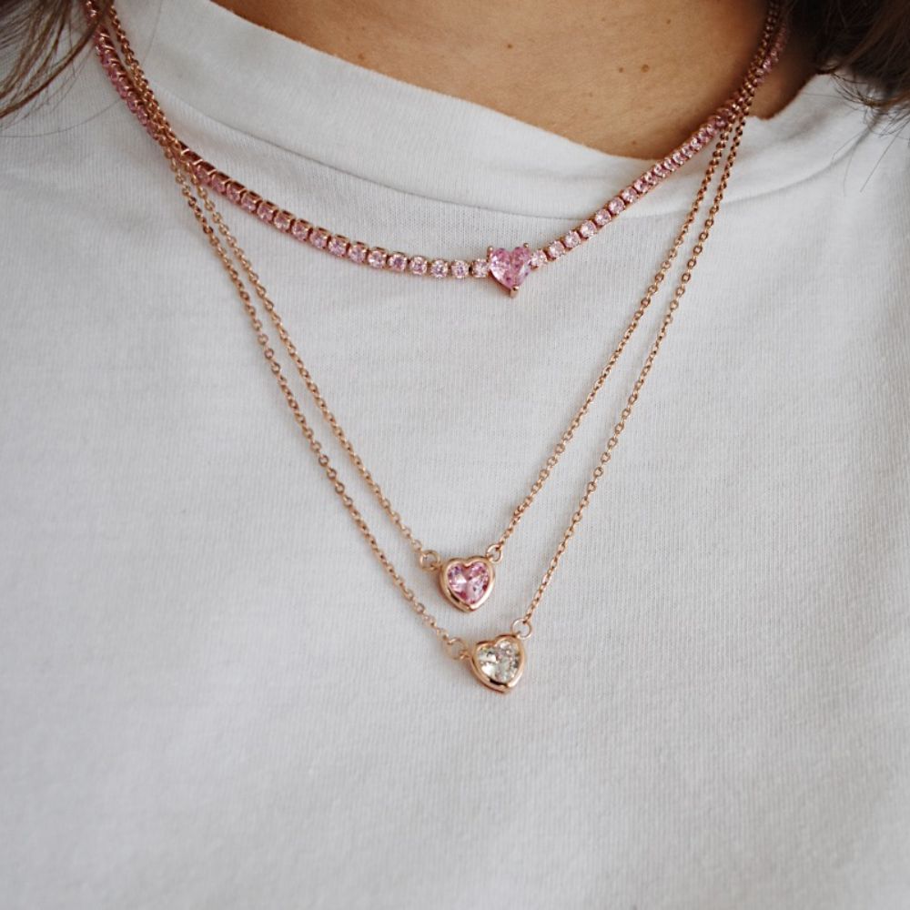 Colier cu inima placat cu aur roz de 18 K cu cristal roz Heart to Heart