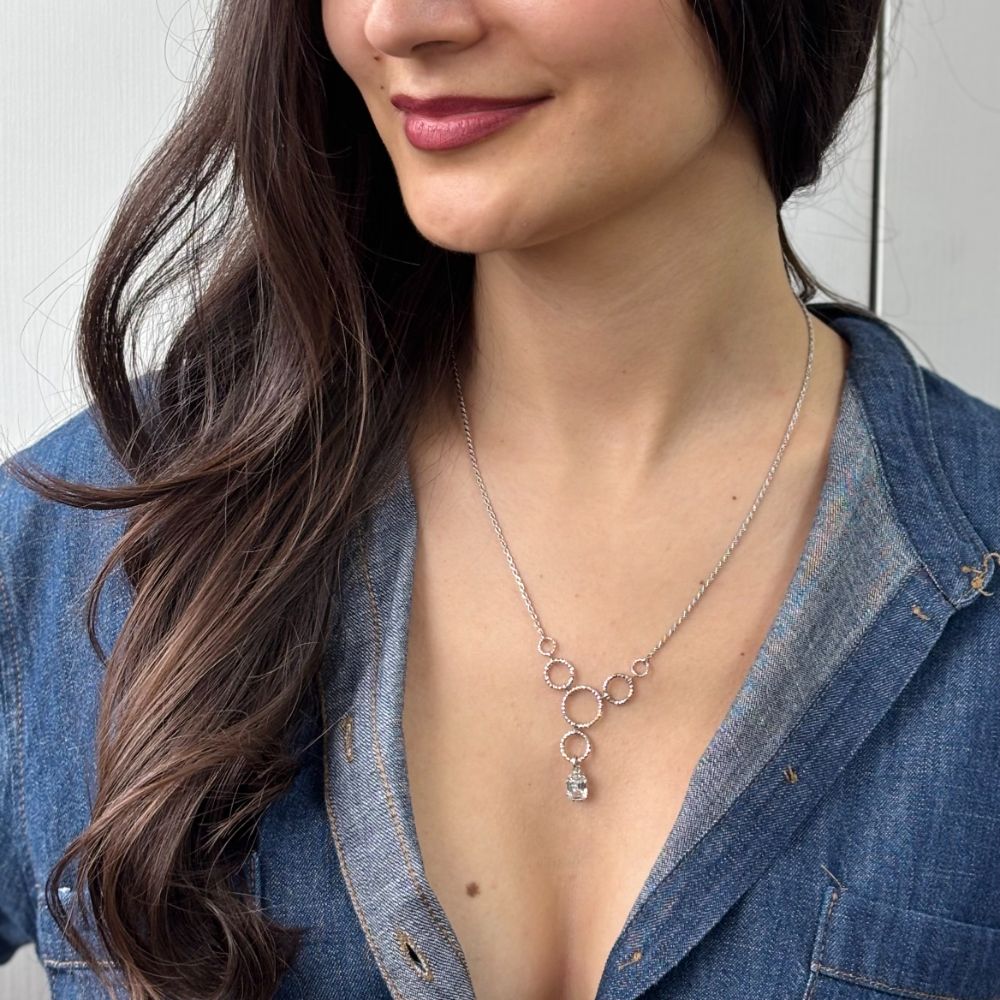 Colier elegant realizat din argint 925 placat cu rodiu decorat cu piatra cubic zirconia incolora.