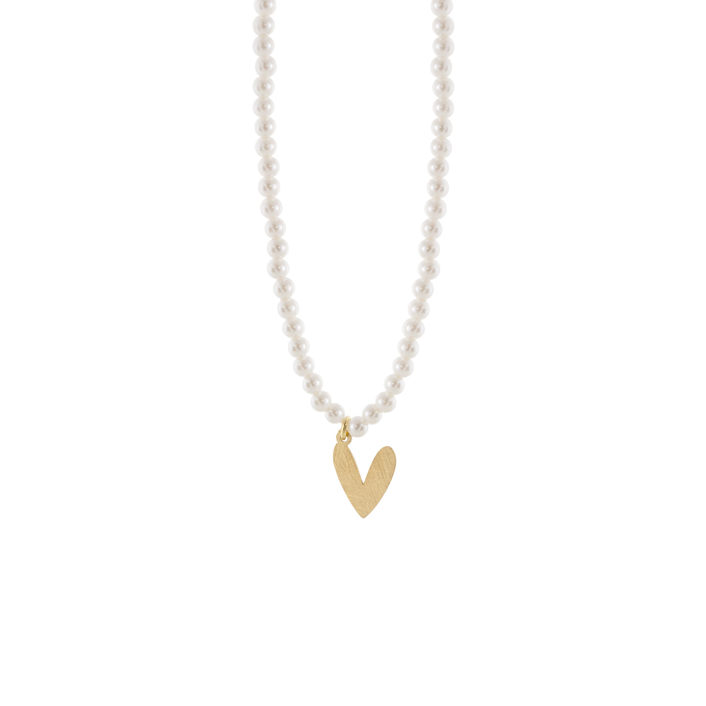Colier scurt realizat din argint 925 placat cu aur galben de 18K decorat cu perle de cultura si un pandantiv inima.