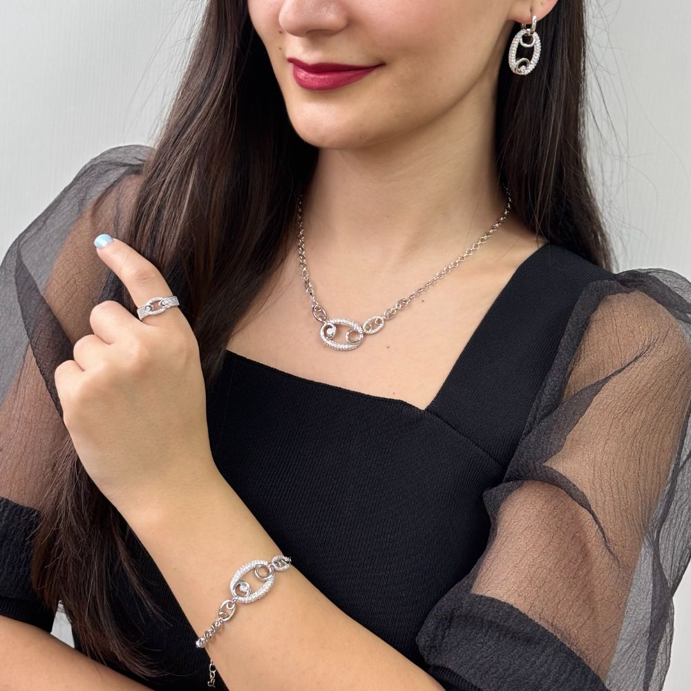 Colier placat cu rodiu si pandantiv si pietre zirconia Links
