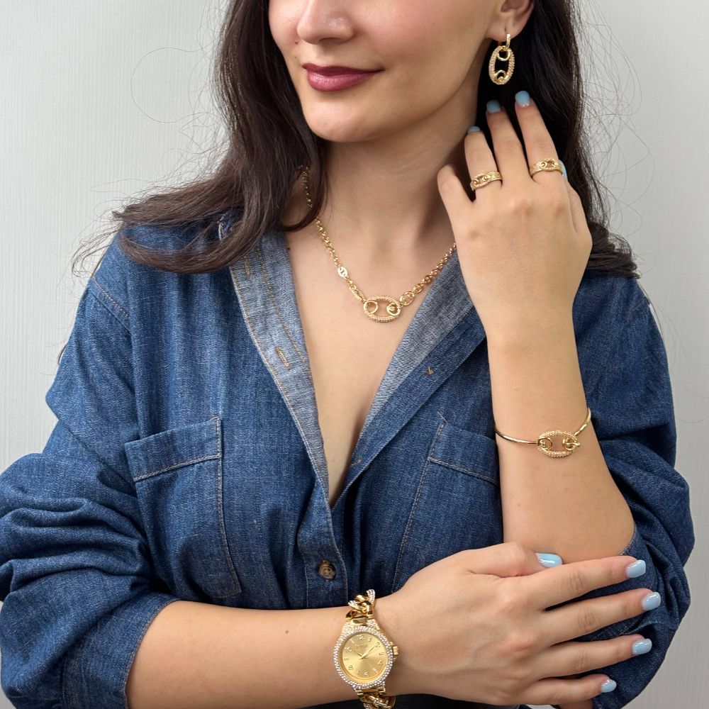 Bratara placata cu aur de 18K decorata cu hamsa si ochi Links