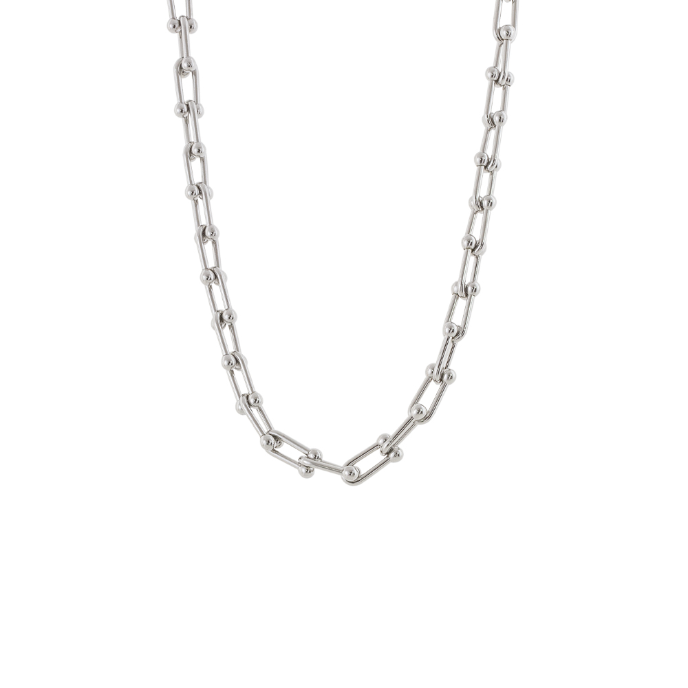 Colier scurt cu zale realizat din otel inoxidabil placat cu rodiu.