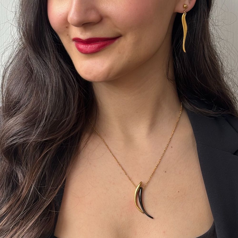 Colier cu pandantiv realizat din otel inoxidabil placat cu aur de 18K.