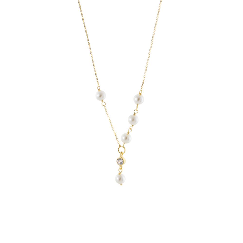 Colier scurt argint placat cu aur de 18K cu piatra zirconia si perle Lovely, 01L05-01703, Oxette Romania