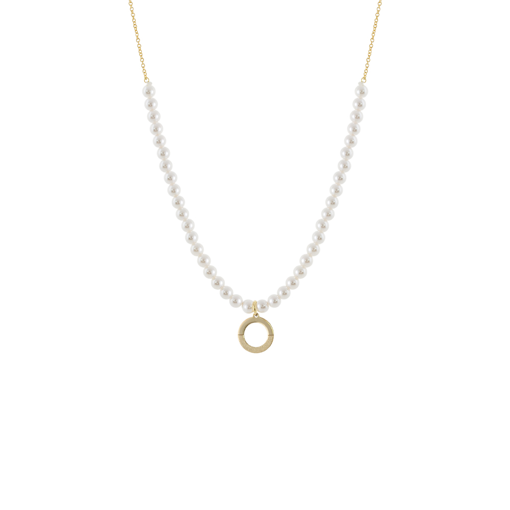 Colier cu pandantiv realizat din argint placat cu aur 18K decorat cu perle sintetice.