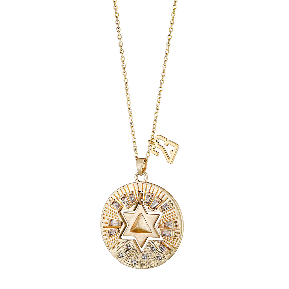 Colier placat cu aur de 18K si pandantiv rotund cu simboluri Lucky Charm