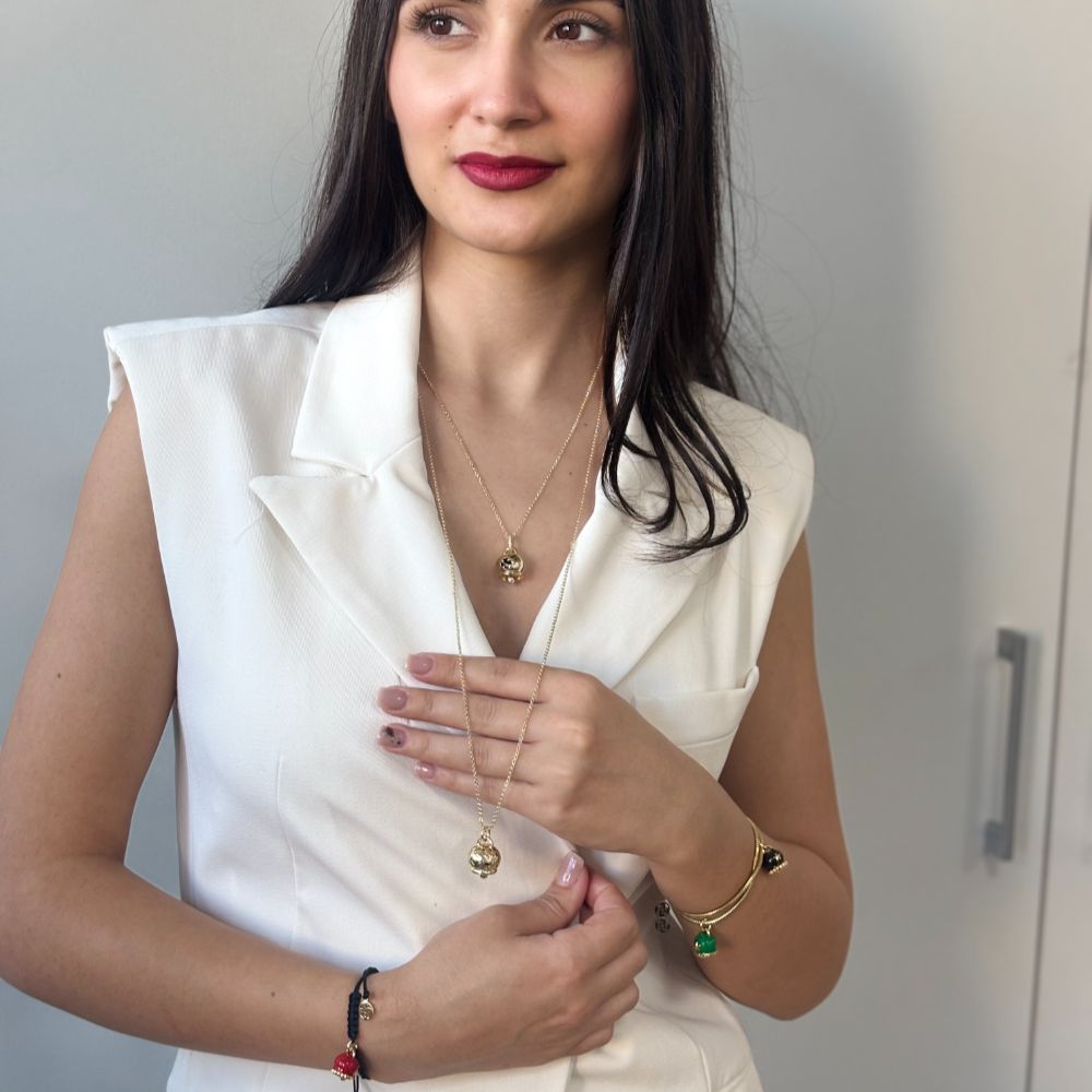 Poarta colierul cu un top sau rochie cu decolteu rotund sau in V, intr-o tinuta de zi eleganta. Lasa pandantivul sa cada pe mijlocul pieptului si combina-l cu cercei mici aurii. Restul accesoriilor trebuie reduse, astfel incat clopotel sa fie punctul focal al look-ului.