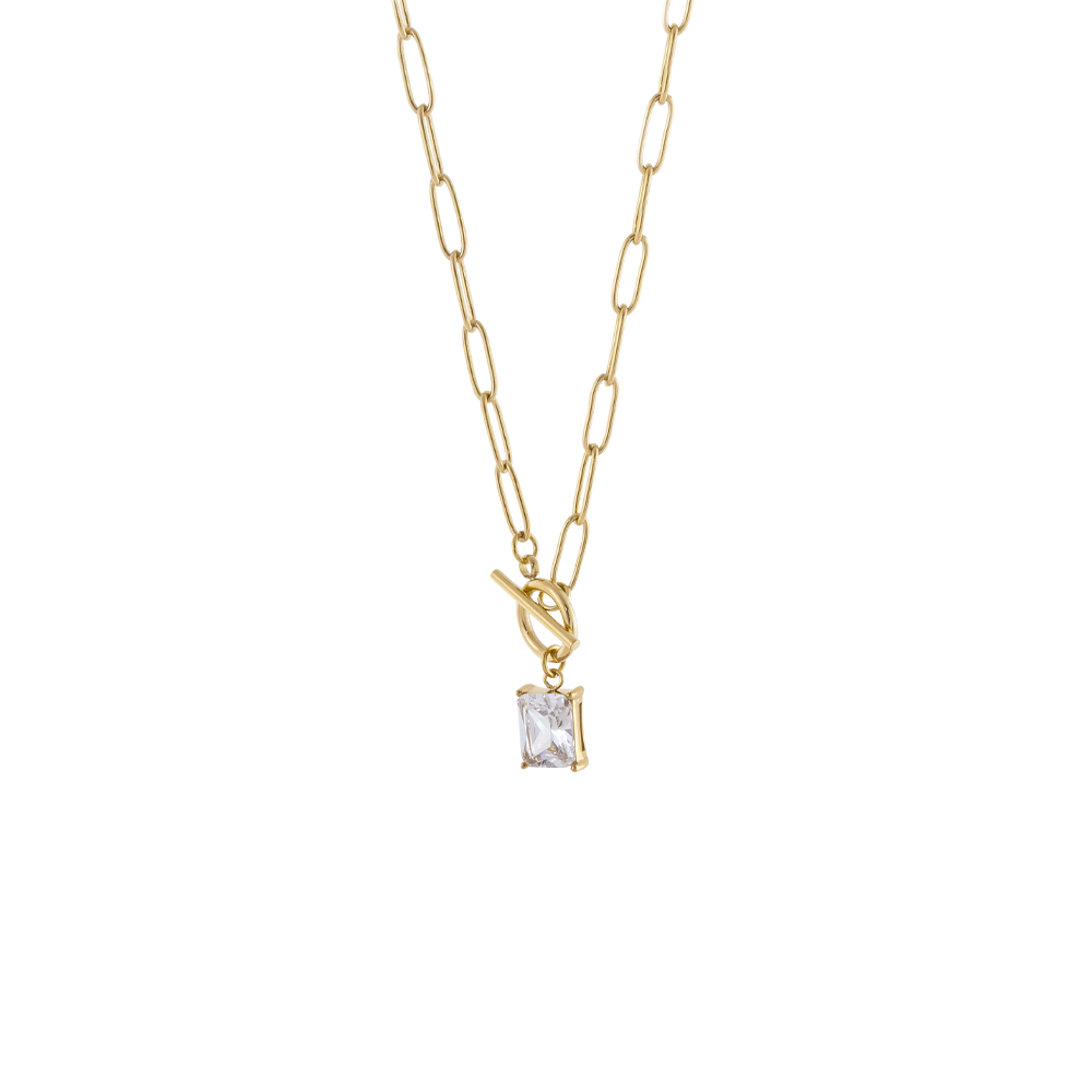 Colier cu pandantiv realizat din otel inoxidabil placat cu aur de 18K decorat cu piatra zirconia incolora.