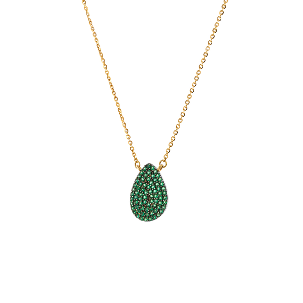 Colier scurt argint placat cu aur de 18K cu pandantiv lacrima si pietre zirconia verzi Mirror