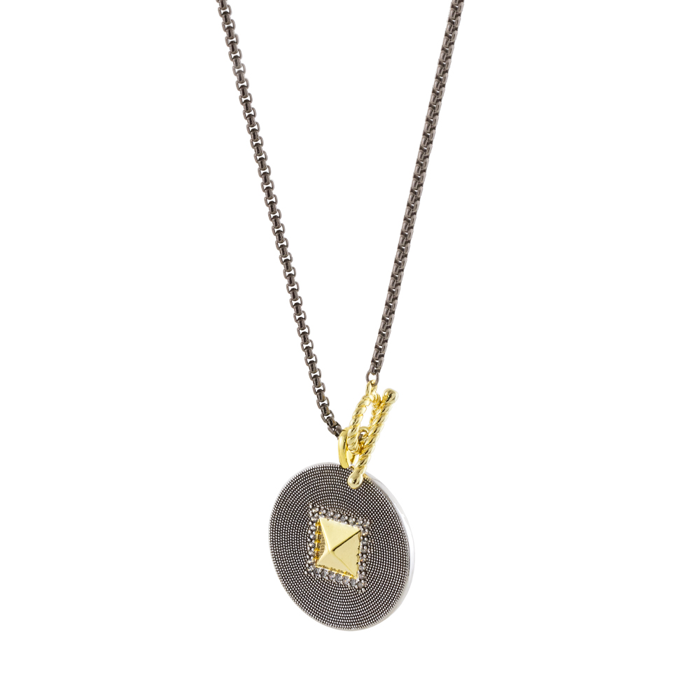 Colier lung placat cu rodiu si ruteniu cu pandantiv rotund si piramida Natrix Bis