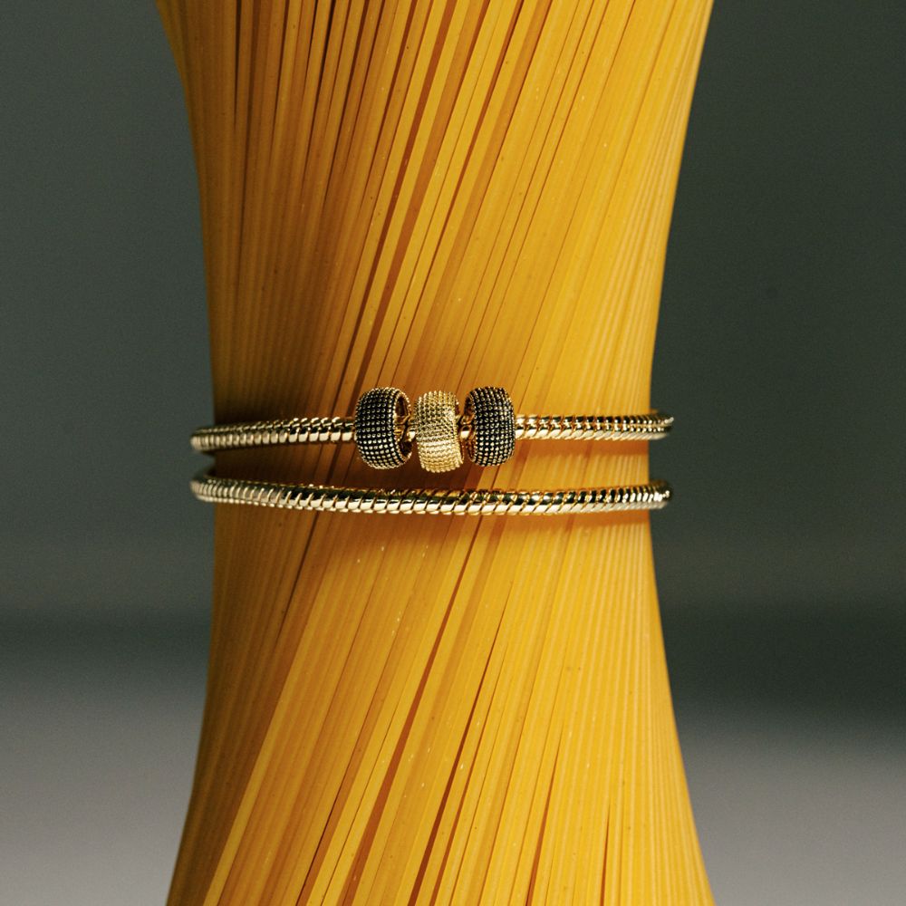 Colier la baza gatului placat cu aur galben de 18 K decorat cu 3 inele Natrix