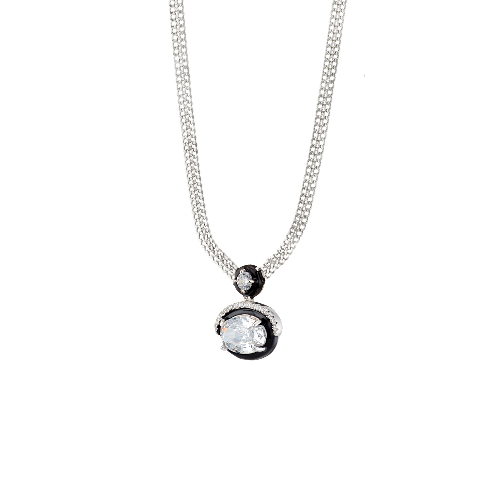 Colier scurt placat cu rodiu si cristale zirconia incolore Party, 01X15-00482, Oxette Romania