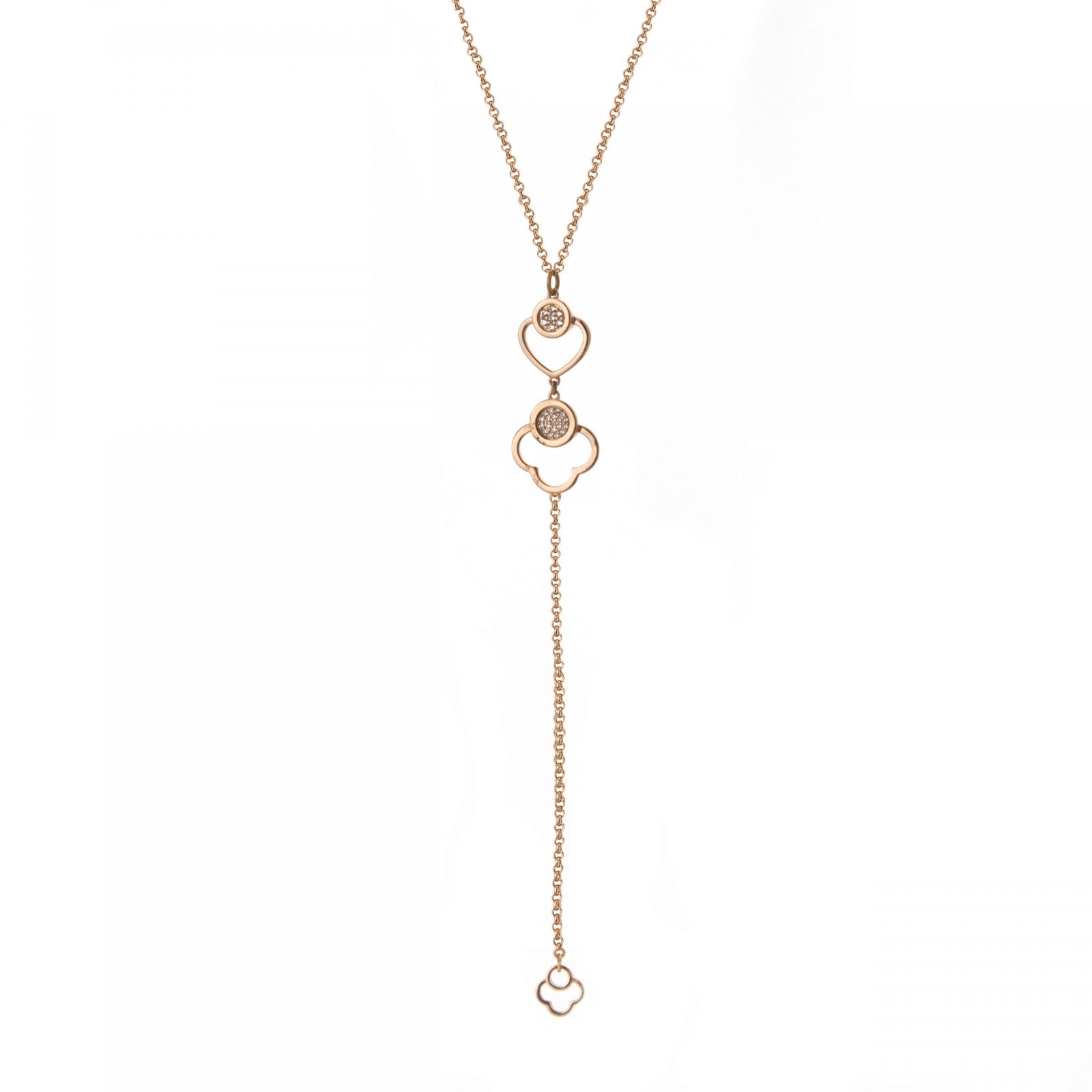 1 recenzie pentru Colier tip Y placat cu aur roz de 18 K decorat cu pandantive inima si floare Pretty