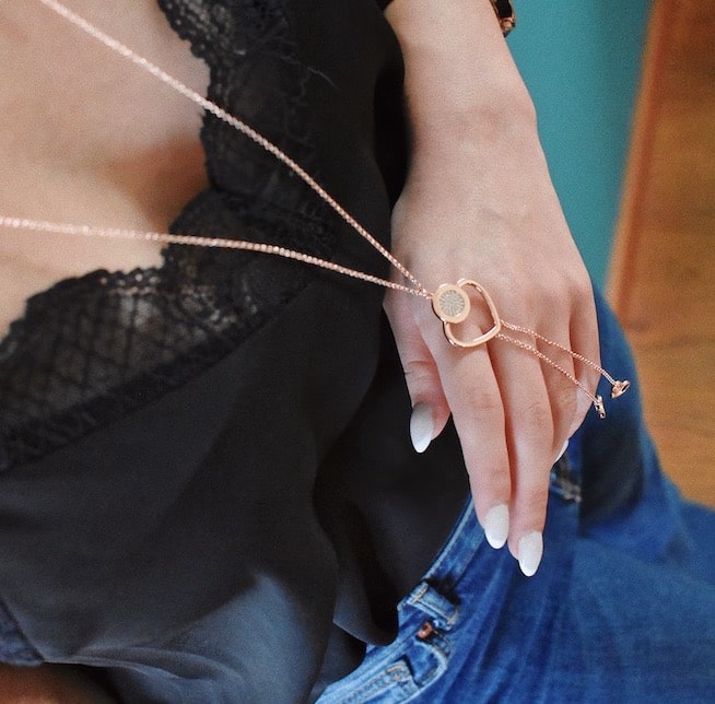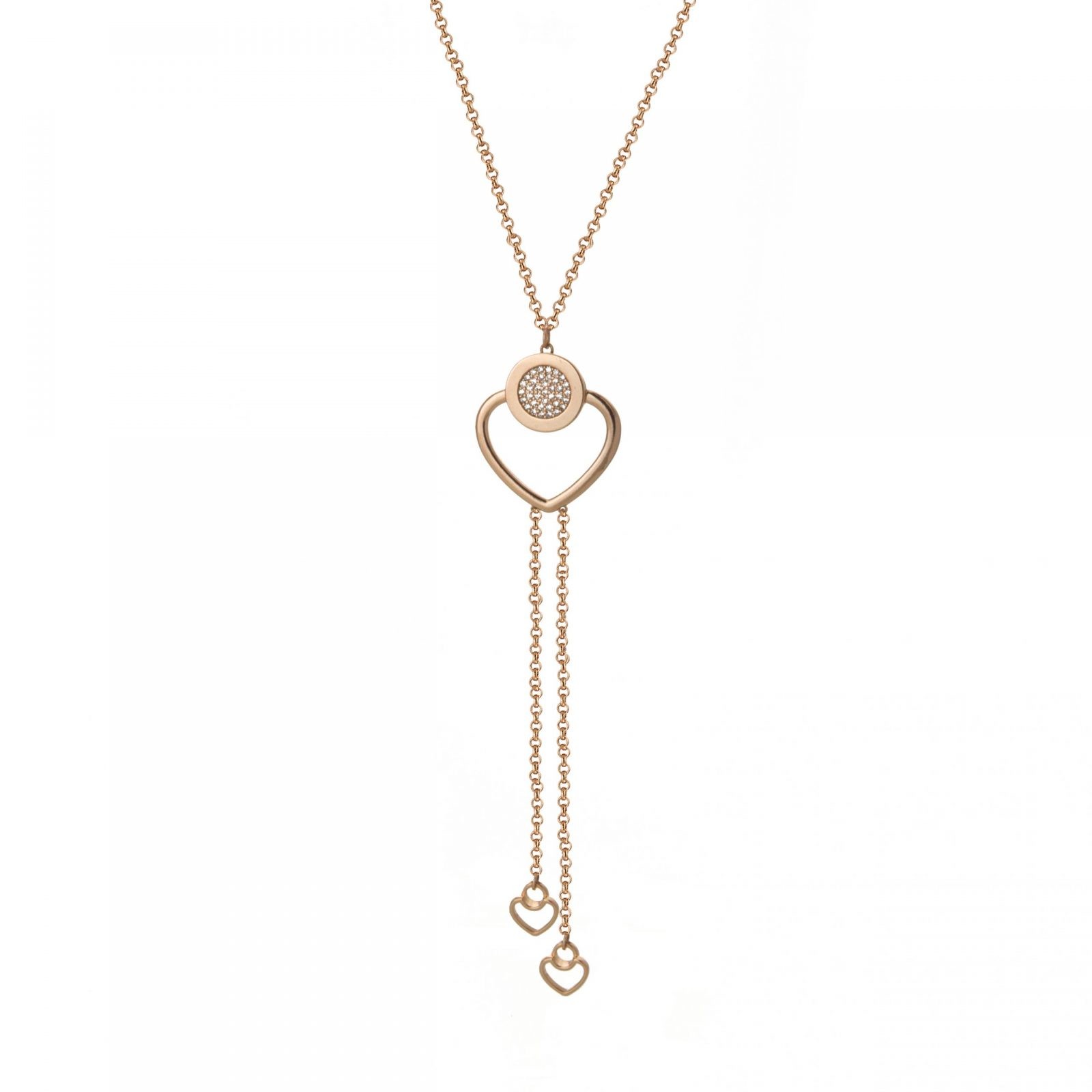 Colier tip Y placat cu aur roz de 18 K decorat cu inima, lanturi si cubic zirconia Pretty