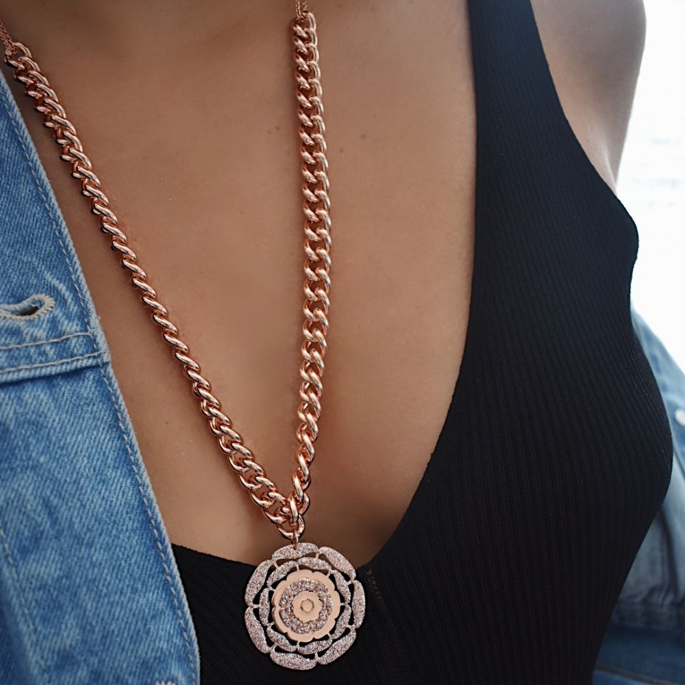 Colier placat cu aur roz de 18 K cu zale si pandantiv floare Rosy