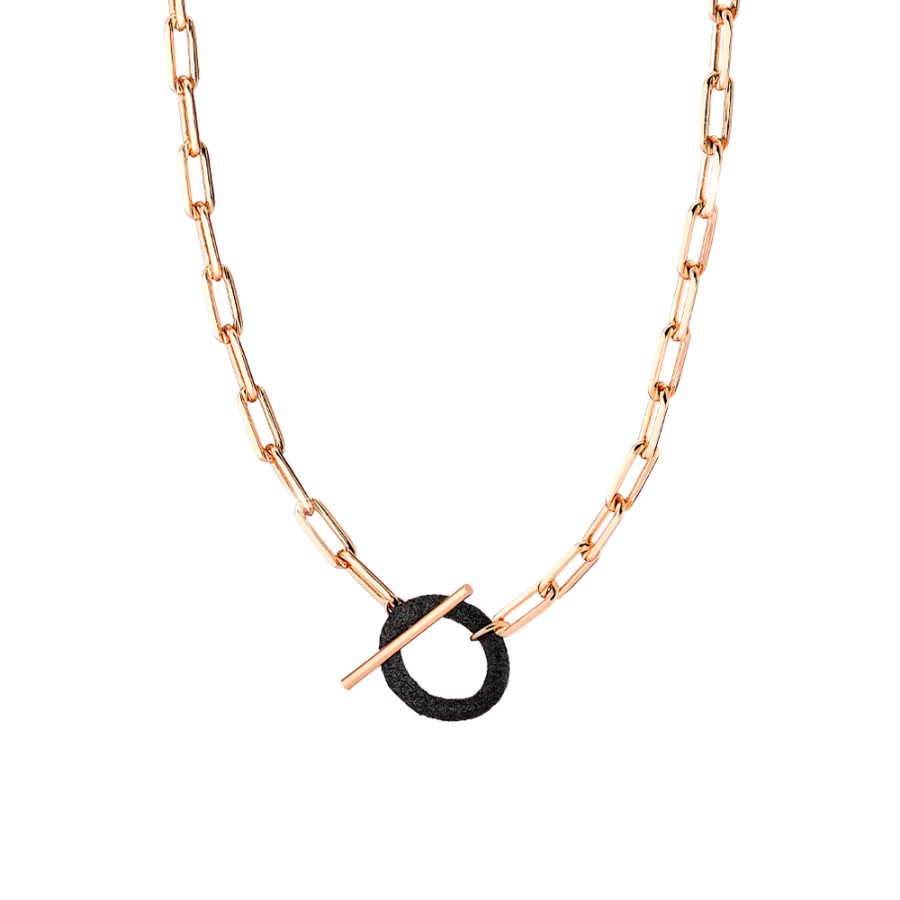 Colier cu zale realizat din metal comun placat cu aur roz de 18 K decorat cu pandantiv rotund presarat cu particule fine de glitter negru. Recomandari de purtare: