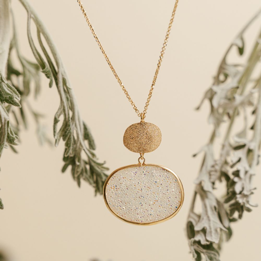 Colier argint placat cu aur galben de 18K cu pandantiv oval si cristale caviar Sunset