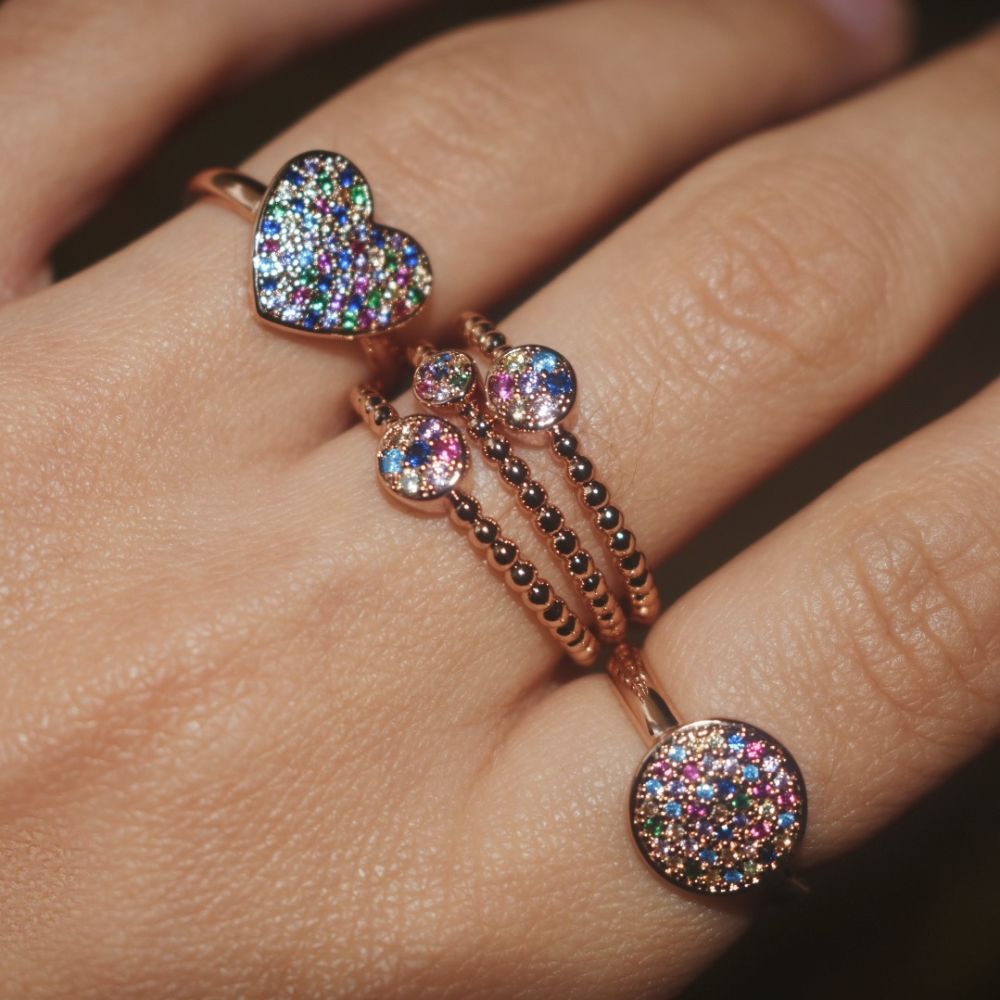 Inel inima placat cu aur roz de 18 K decorat cu cristale colorate Flirty