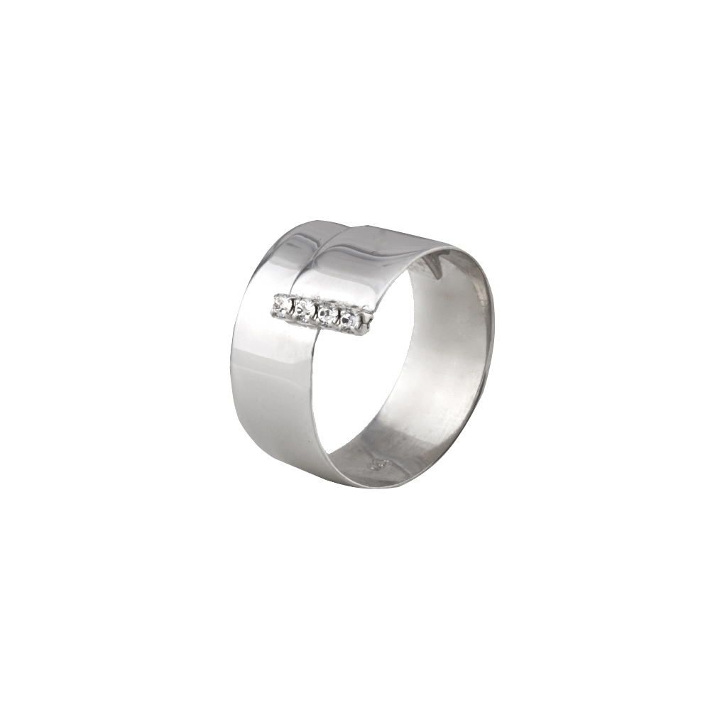 Inel tip verigheta realizat din argint 925 in baie de rodiu, decorat cu cristale naturale de stanca. Recomandari de purtare: